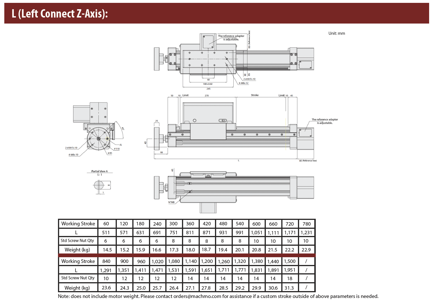 - Max Stroke: 1,500mm