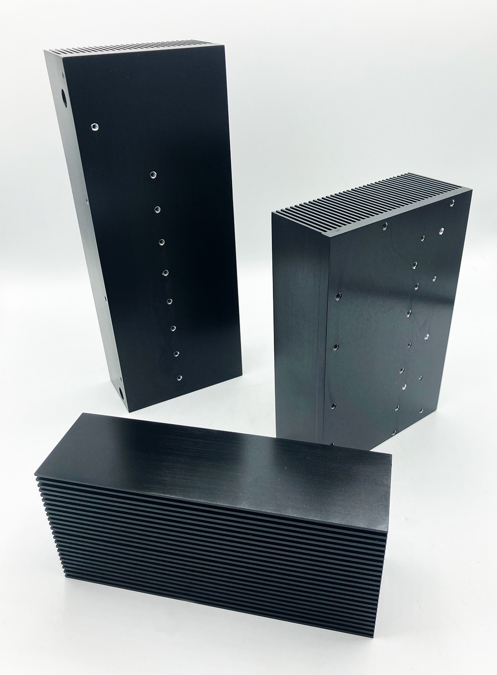 Recently, a customer approached us for help producing a series of custom heat sinks for their OEM project. Using their design as a blueprint, our manufacturing team utilized a CNC cutting method plus a precision anodizing process to create heat sinks that met their specifications.