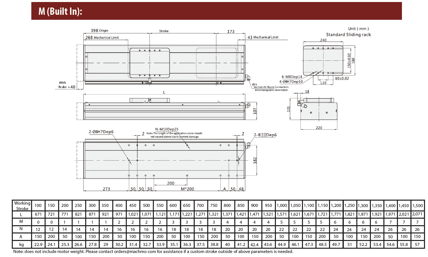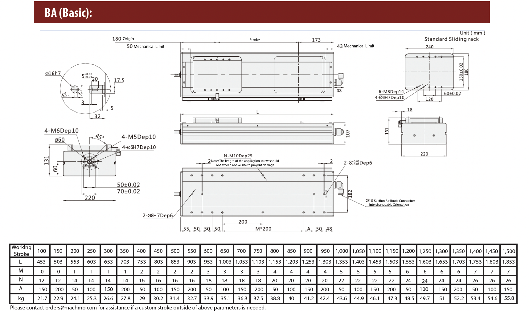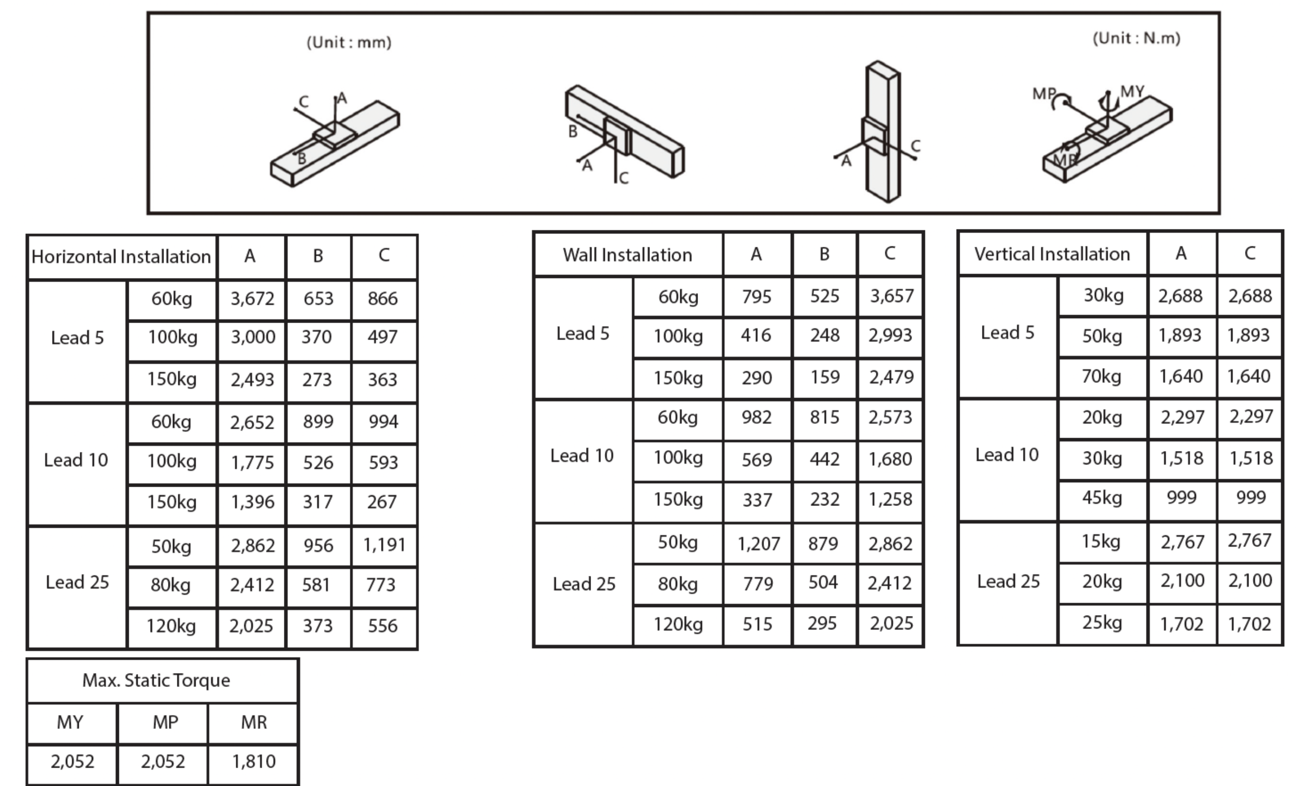 - Ball Screw Lead (mm): 5 / 10 / 25