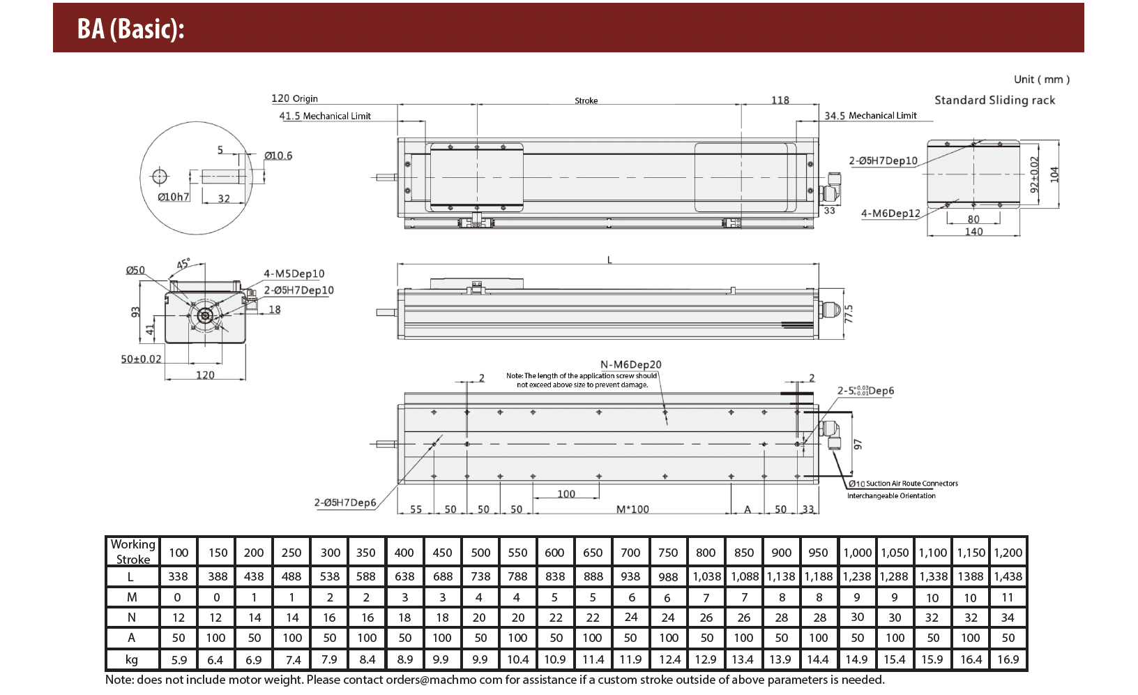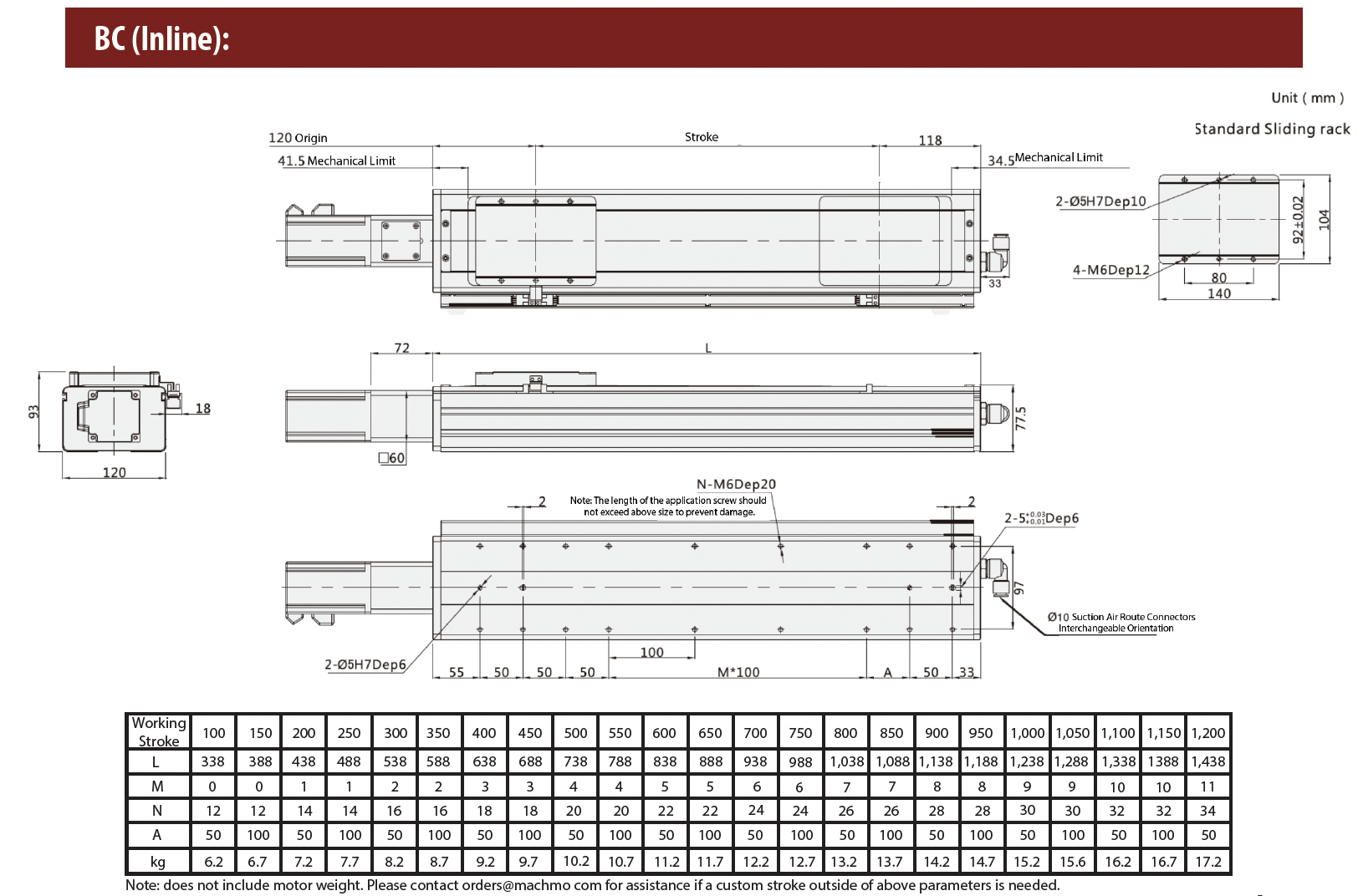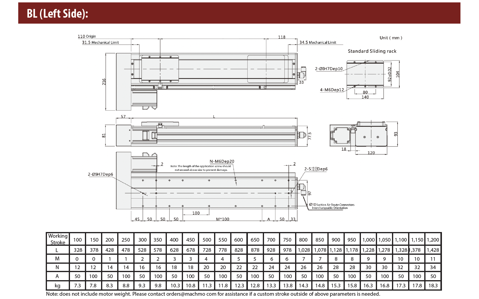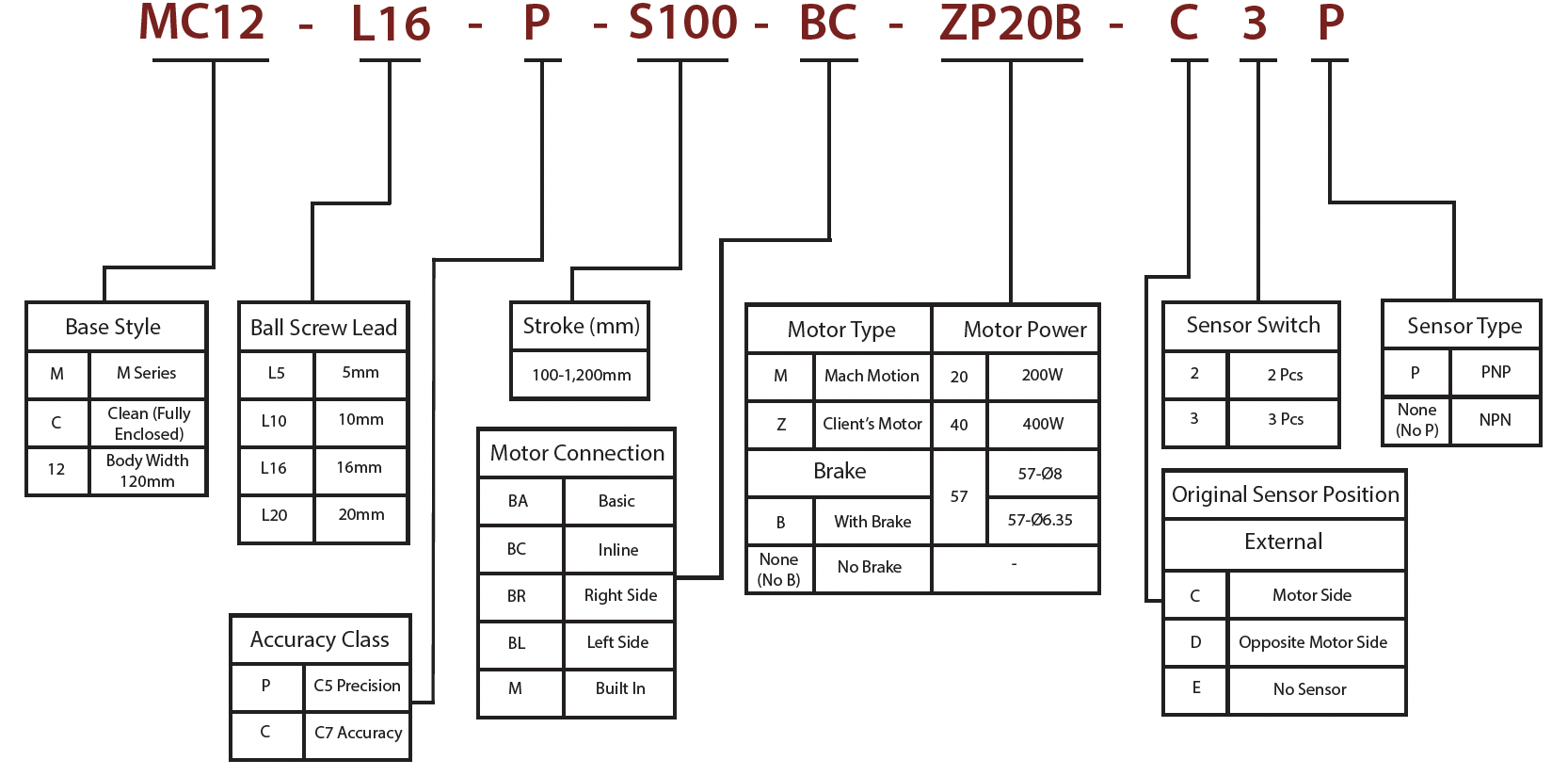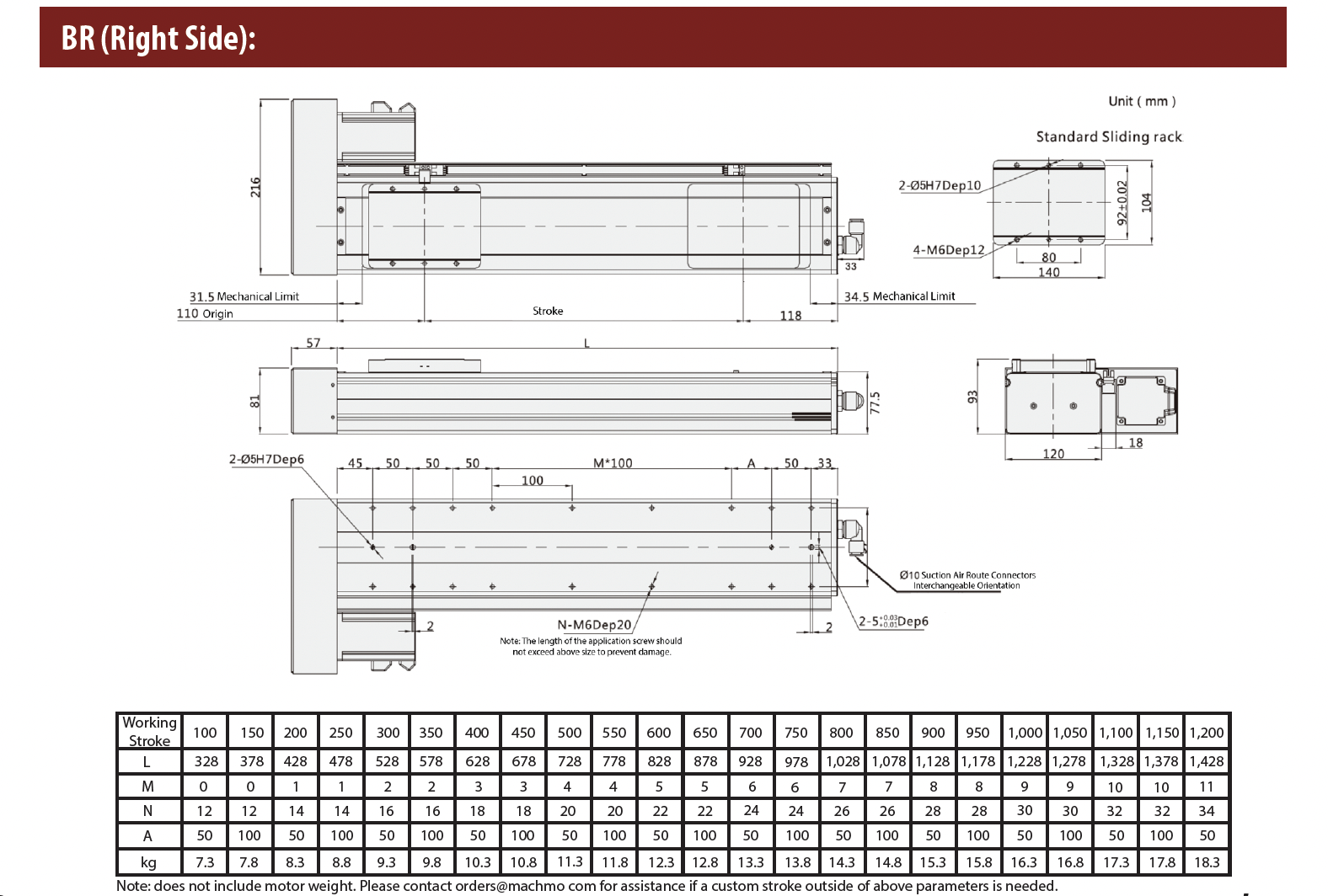 - Ball Screw Lead (mm): 5 / 10 / 16 / 20