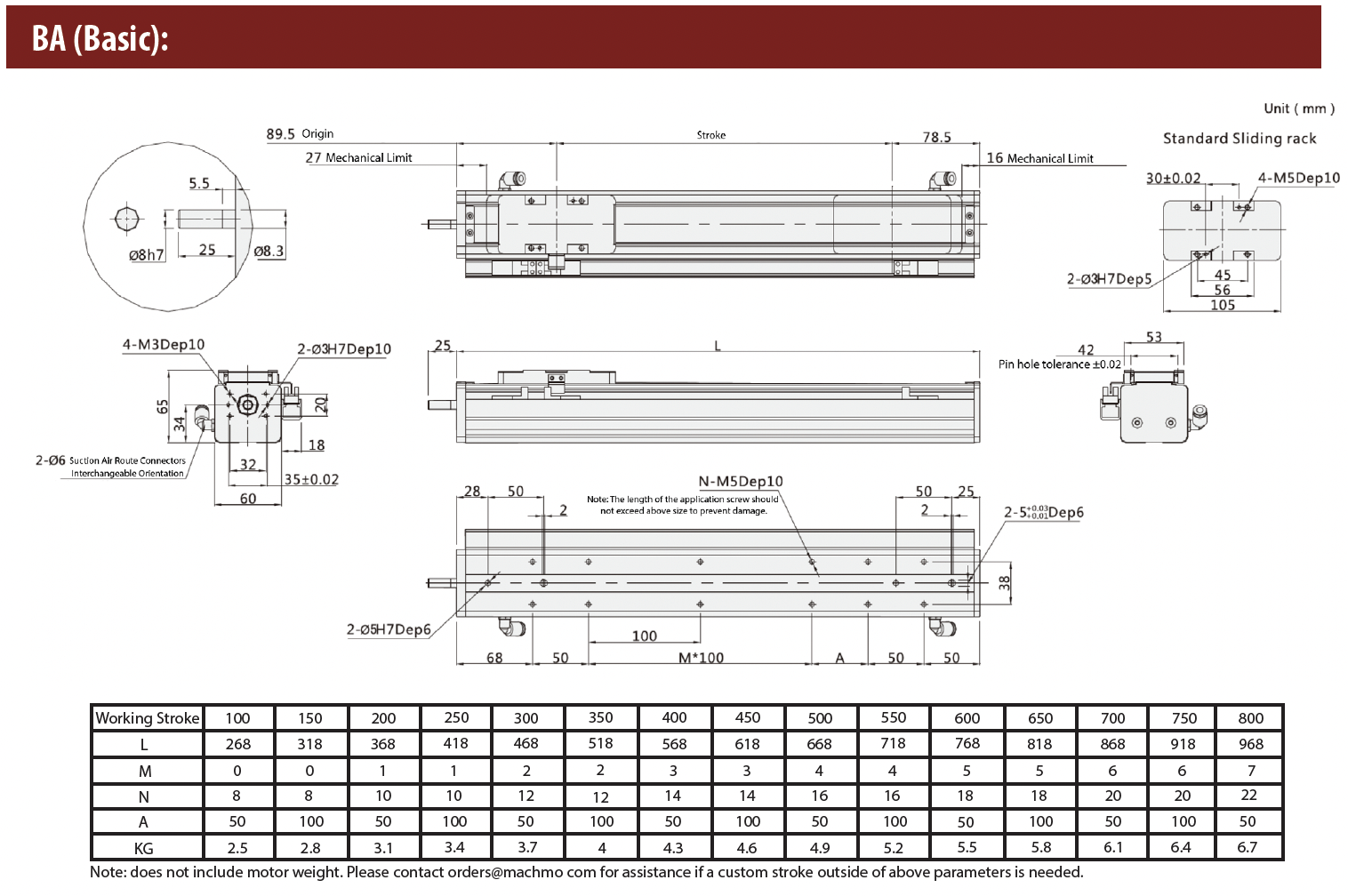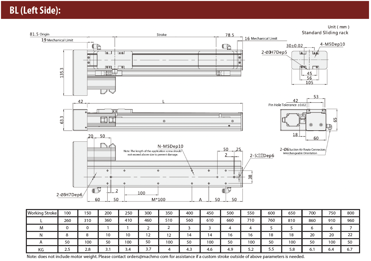 - Max Stroke: 800mm