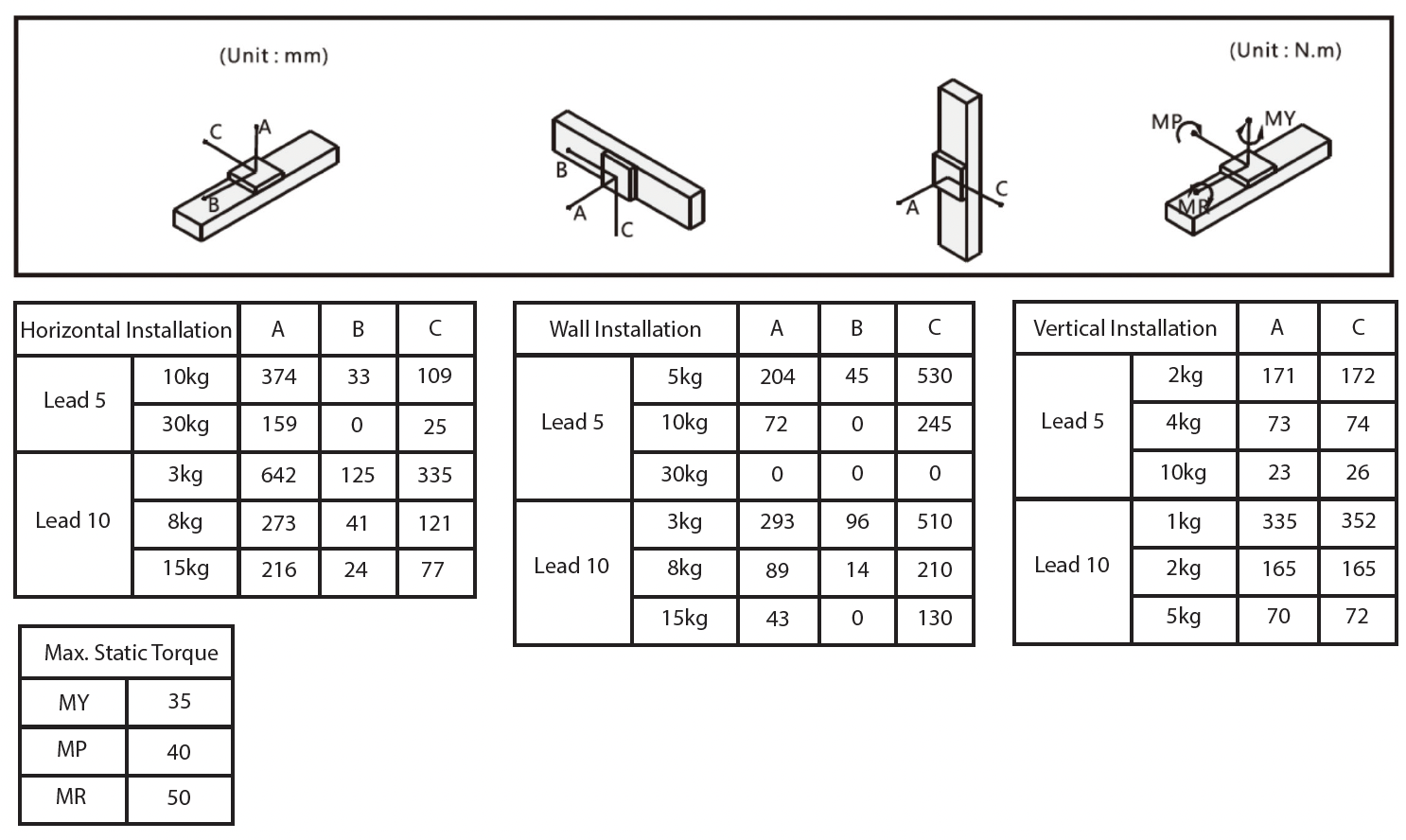 - Ball Screw Lead (mm): 5 / 10