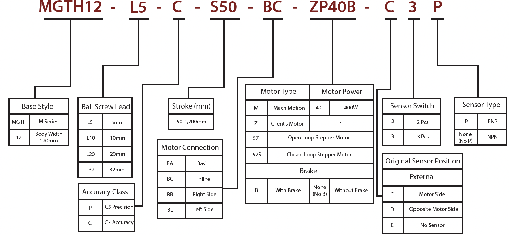 - Ball Screw Lead (mm): 5 / 10 / 20 / 32