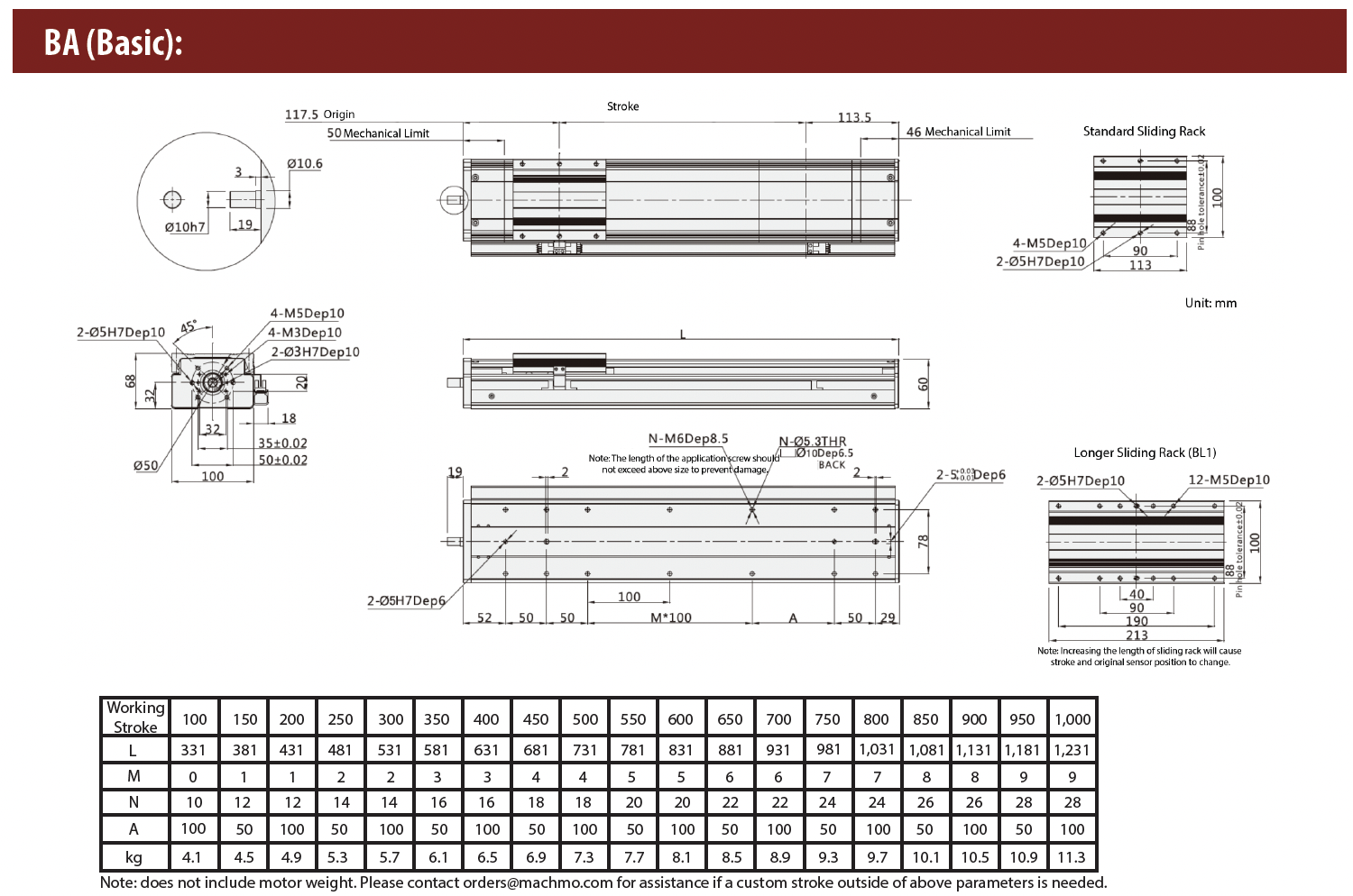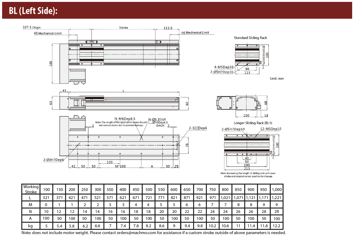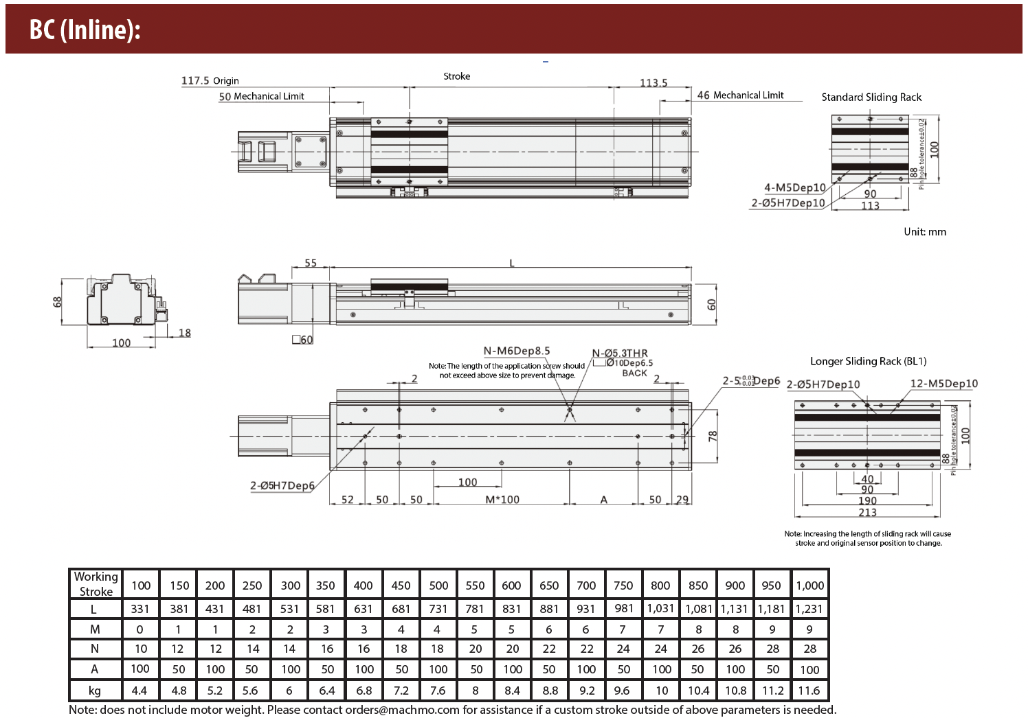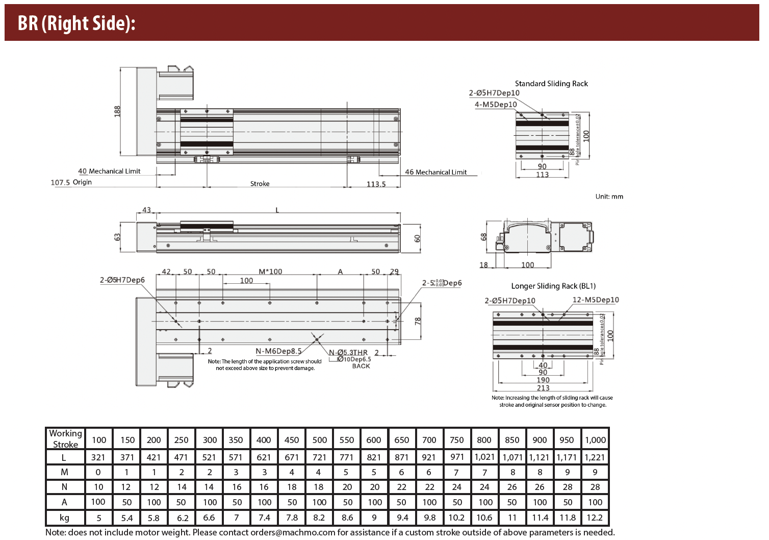 - Ball Screw Lead (mm): 5 / 10 / 16 / 20