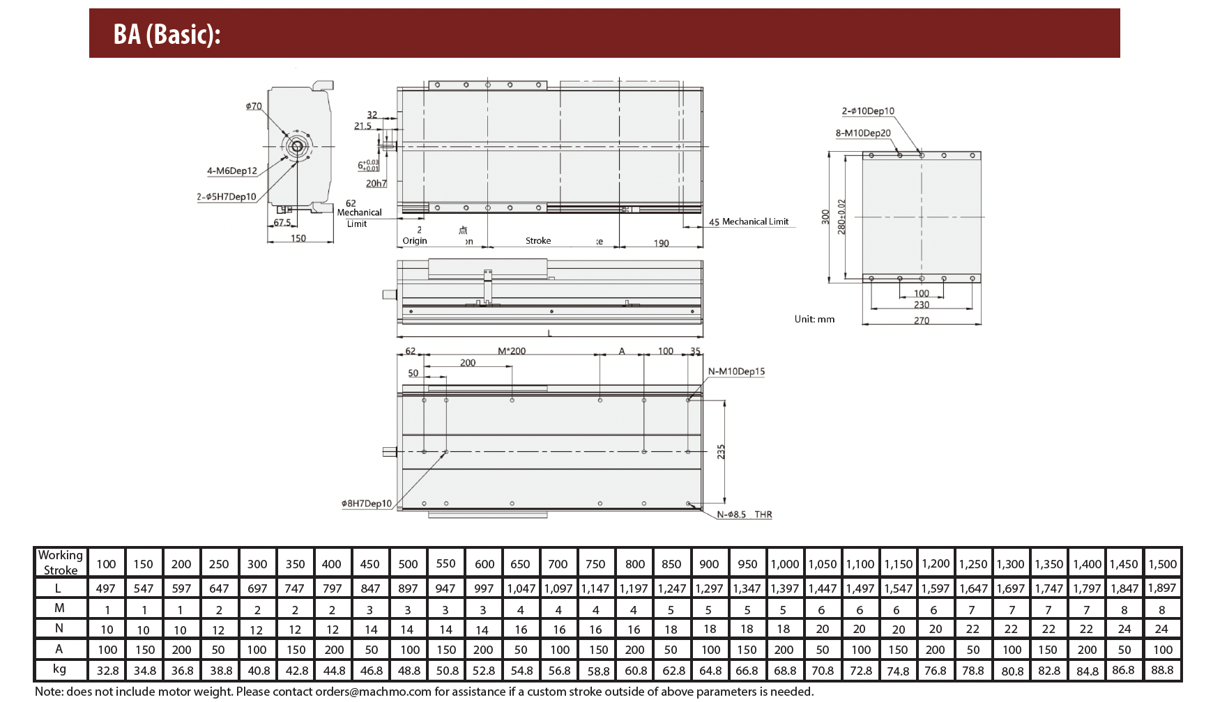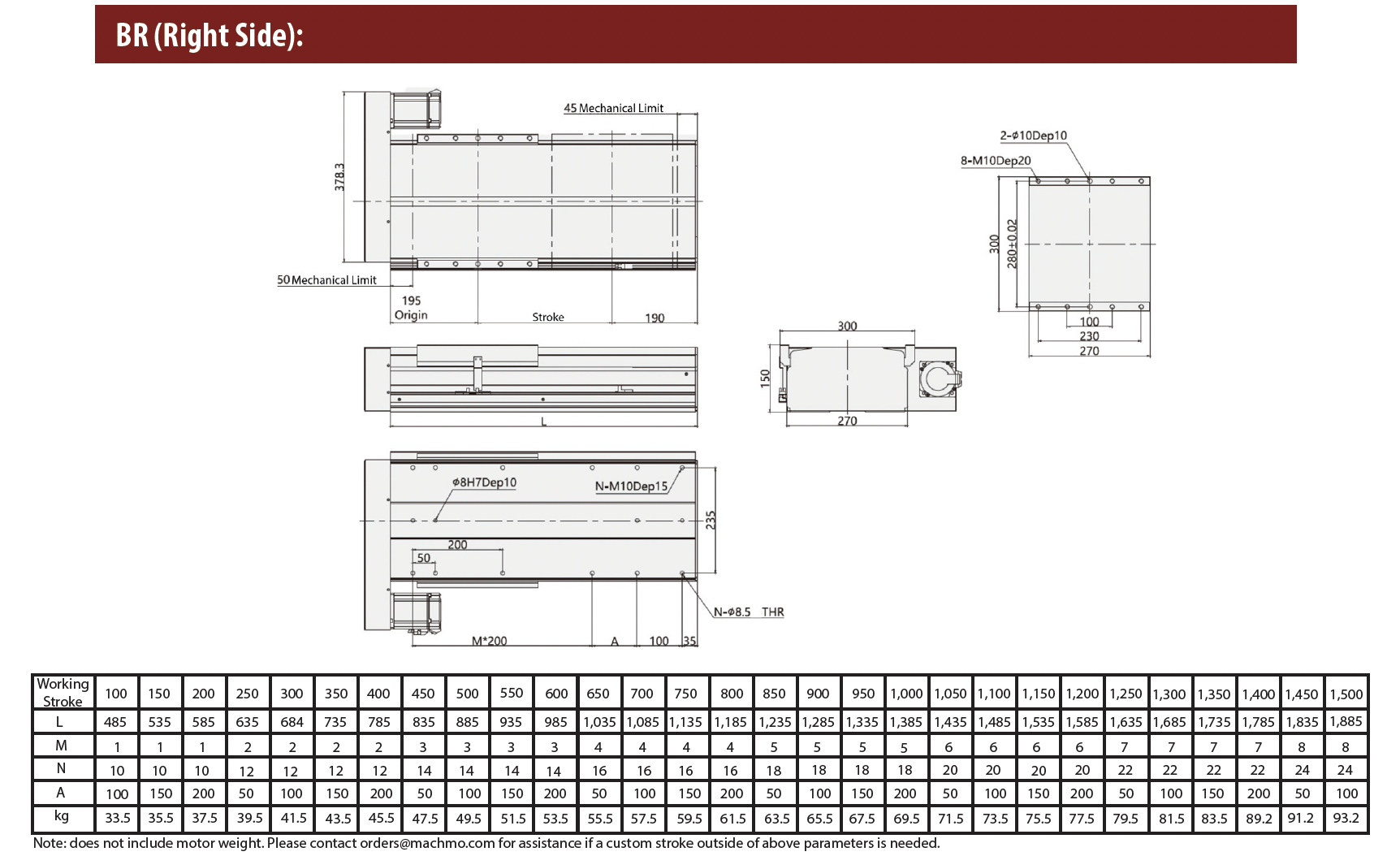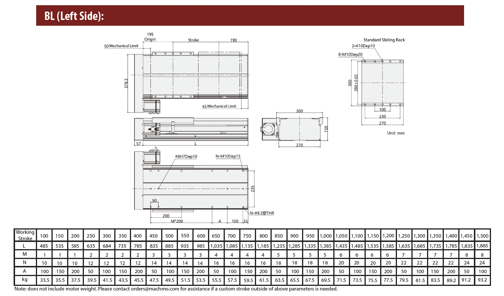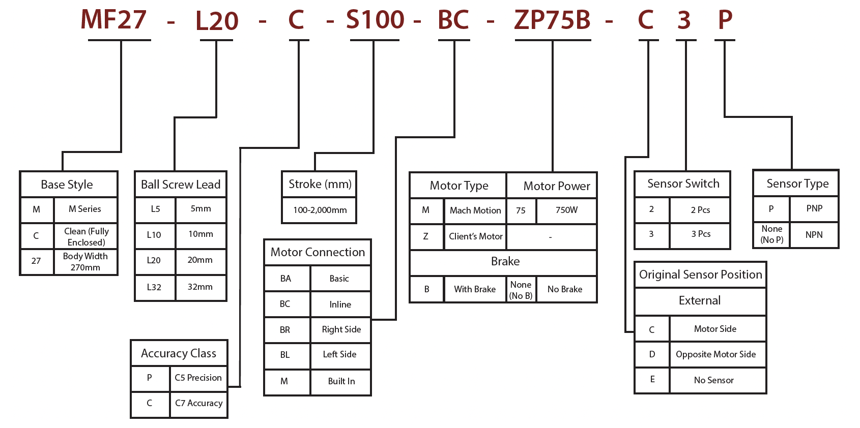 - Ball Screw Lead (mm): 5 / 10 / 20 / 32
