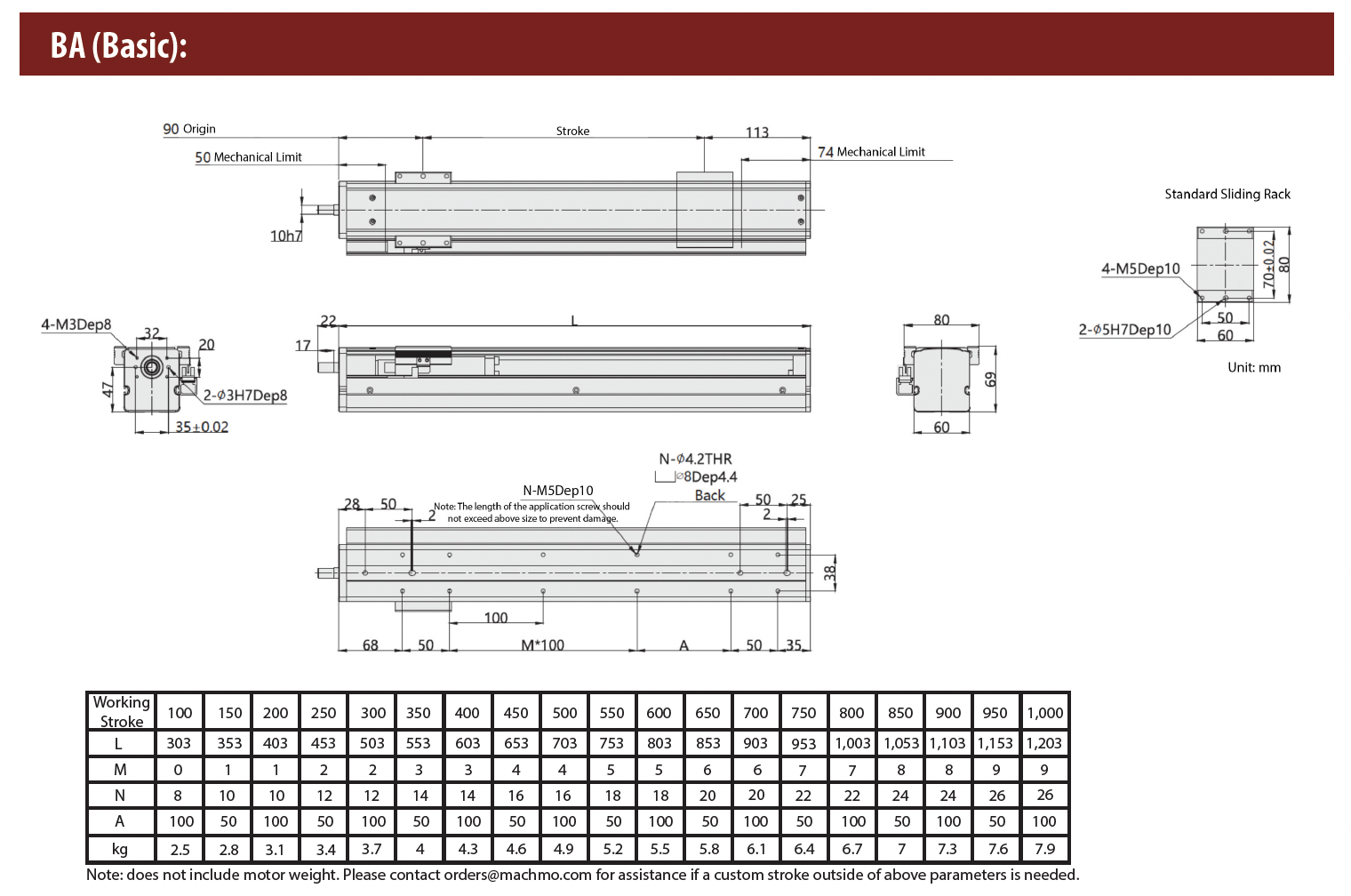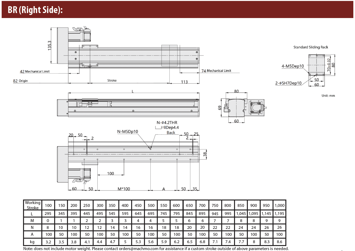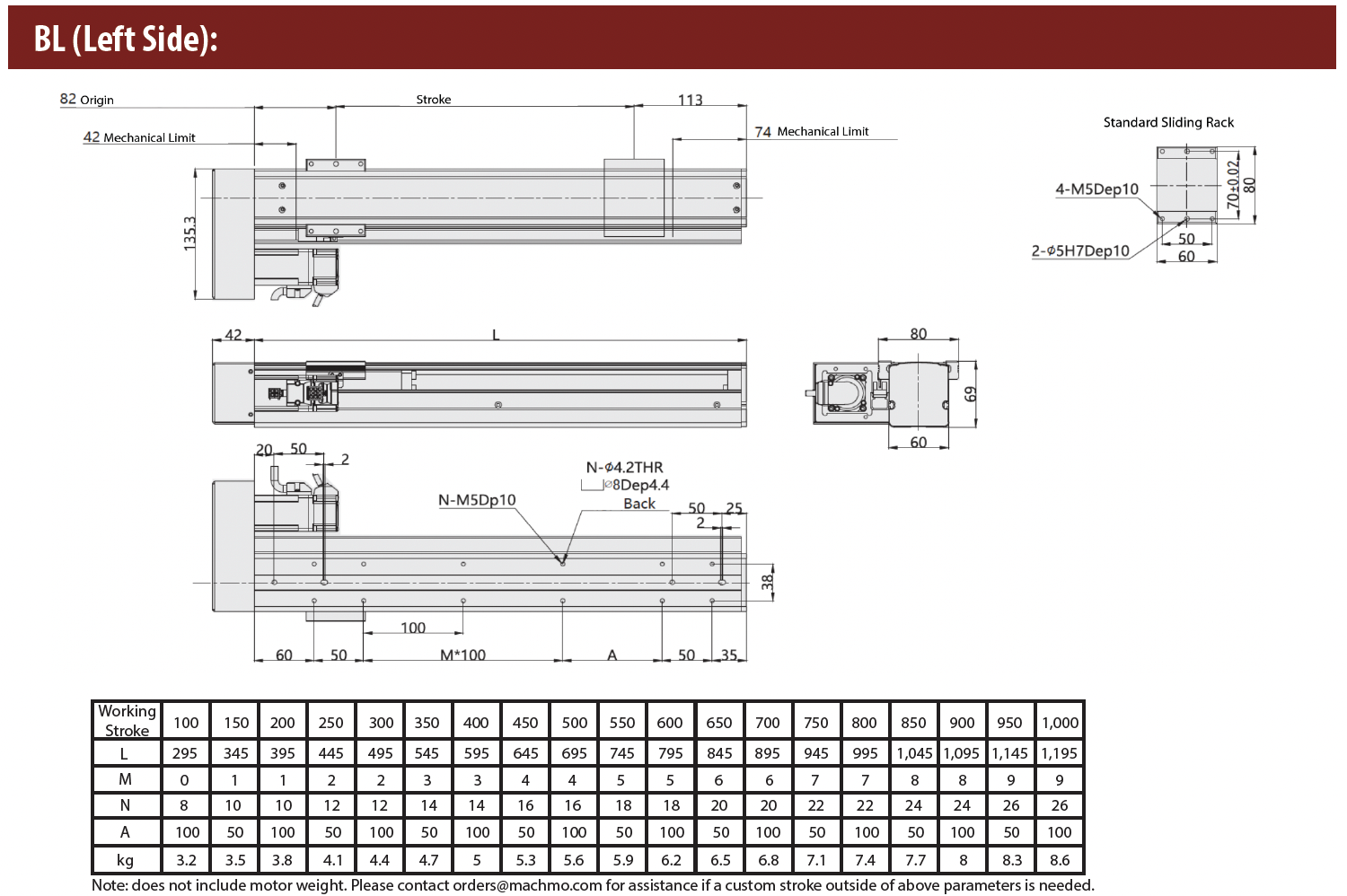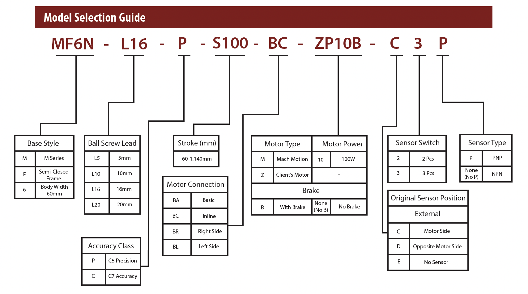 • Ball Screw Lead (mm): 5 / 10 / 16 / 20
